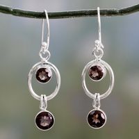 Sterling Silver and Smoky Quartz Earrings from India 'Modern Mist' Item ID: 2671793424