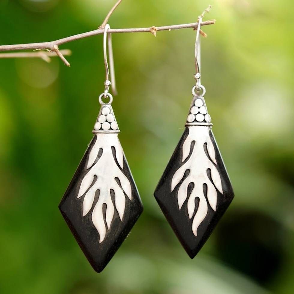 Sterling Silver and Sono Wood Diamond Shaped Earrings 'Diamond Flame' Item ID: 2671735050