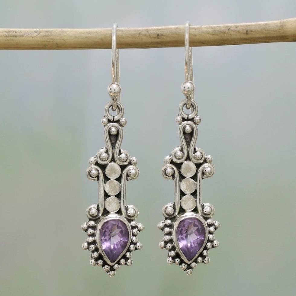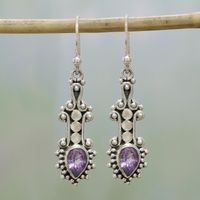 Sterling Silver and Teardrop Amethyst Earrings from India 'Droplet Dreams' Item ID: 2671790121
