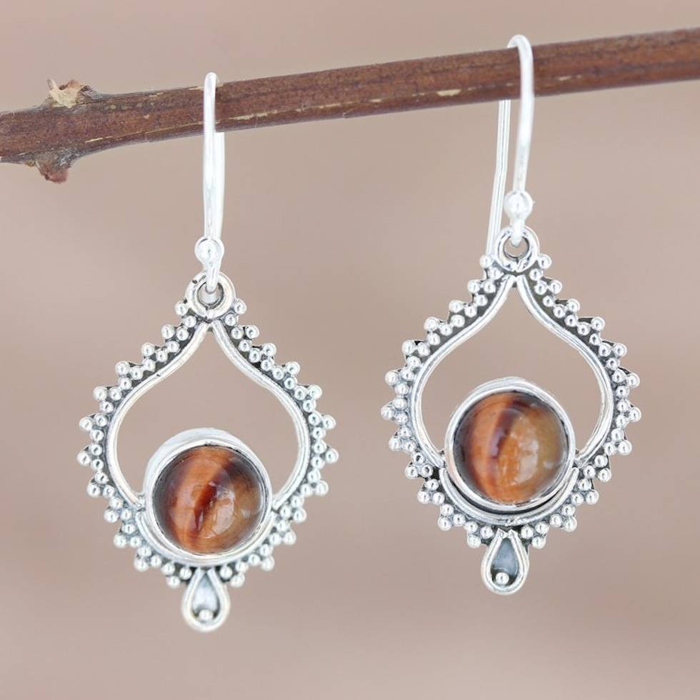 Sterling Silver and Tiger's Eye Dangle Earrings 'Striped Bliss' Item ID: 2671789166