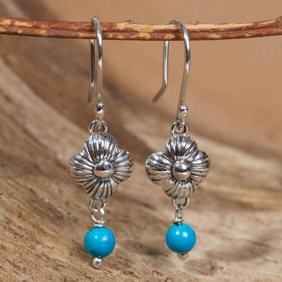Sterling Silver and Turquoise Bead Earrings From Taxco 'Taxco Violets' Item ID: 2669931124