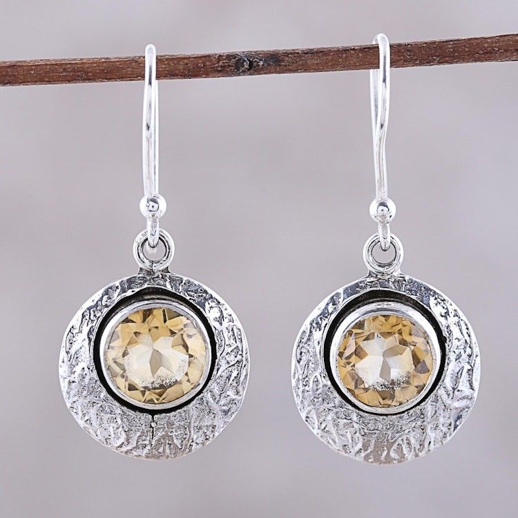 Sterling Silver and Yellow Citrine Round Dangle Earrings 'Lemon Orbs' Item ID: 2671792235