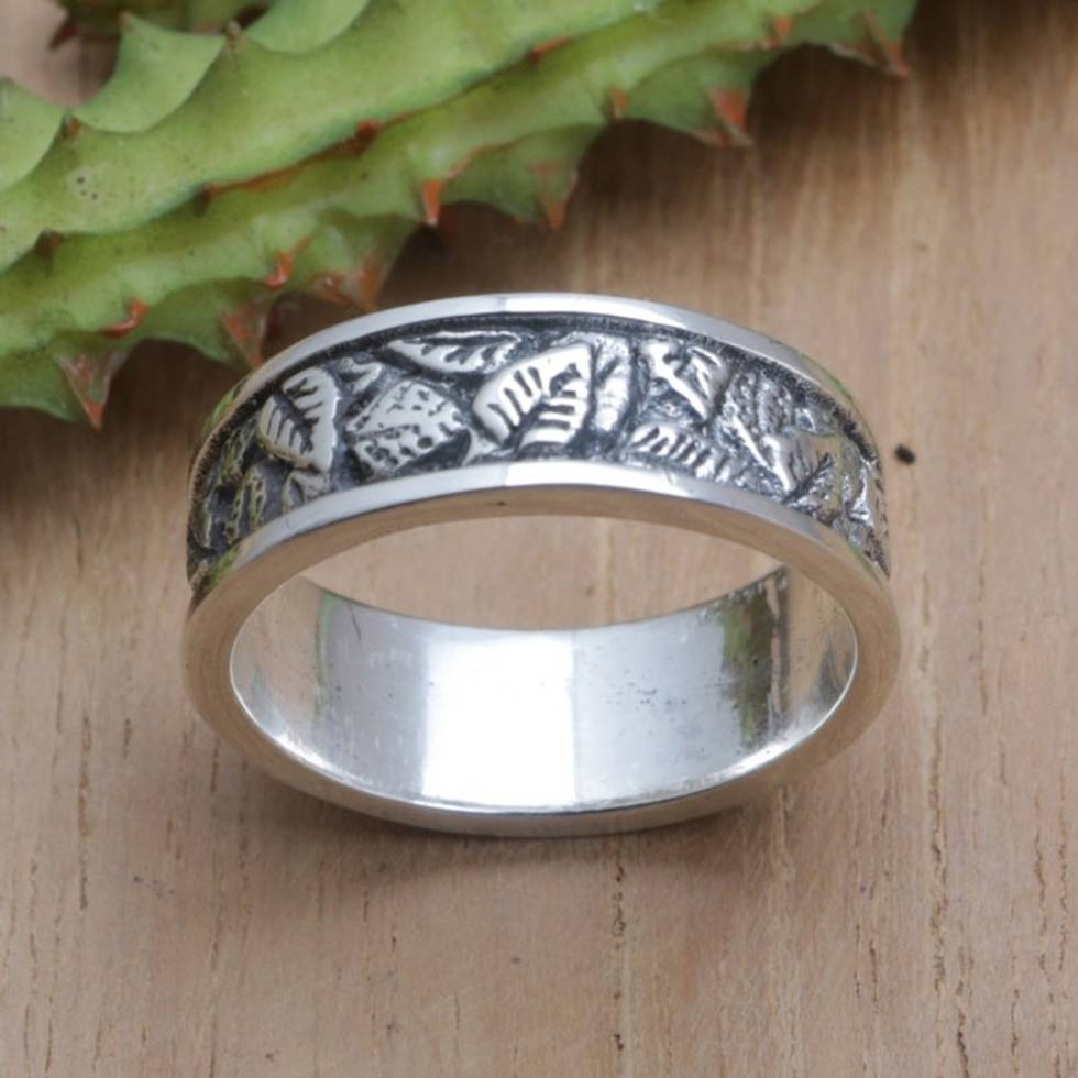 Sterling Silver Autumn Leaf Band Ring from Bali 'Autumn Caresses' Item ID: 2671763206