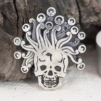 "The Aztec god of death, Miquiztli, is rendered in sterling silver in this pendant. Handcrafted by Mexican artisan Rosa Rojo, the Miquiztli is portrayed as a smiling skull with wild, Medusa-like hair."