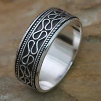 Sterling Silver Balinese Meditation Spinner Ring for Men 'Rolling Waves' Item ID: 2669921270