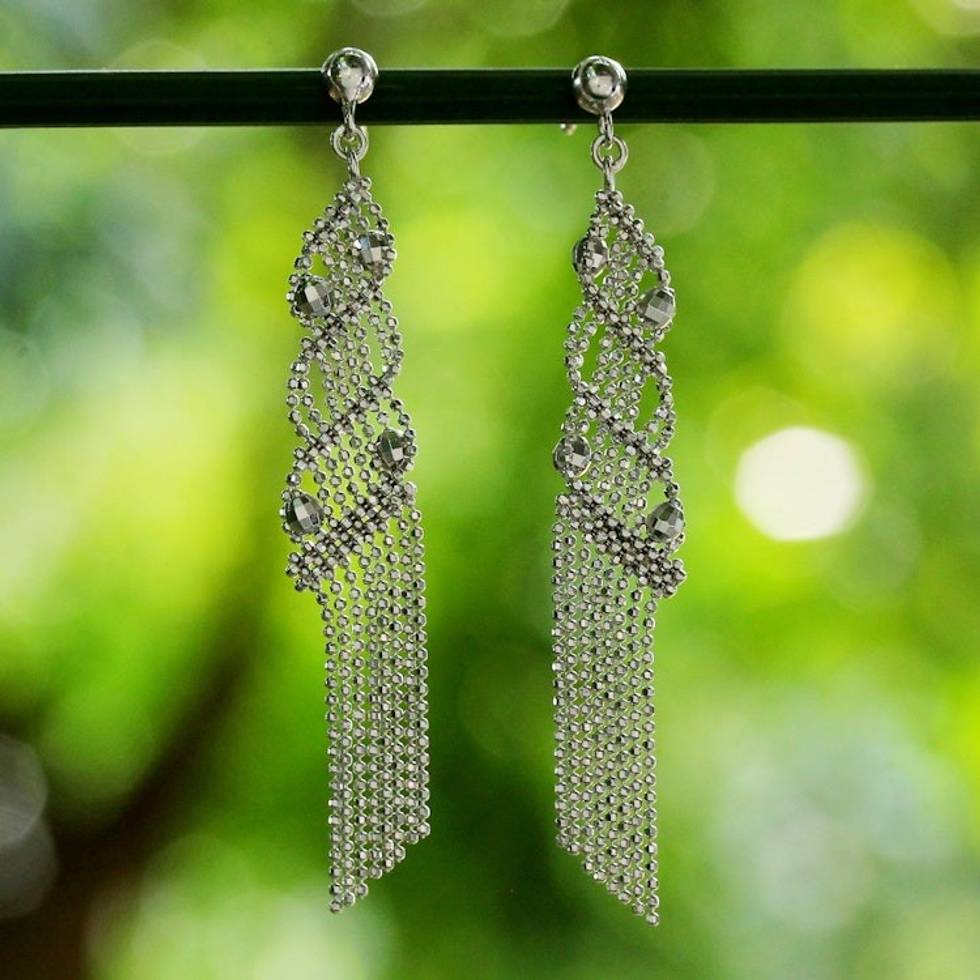 Sterling Silver Ball Chain Chandelier Earrings from Thailand 'Waterfall Fringe' Item ID: 2671802531