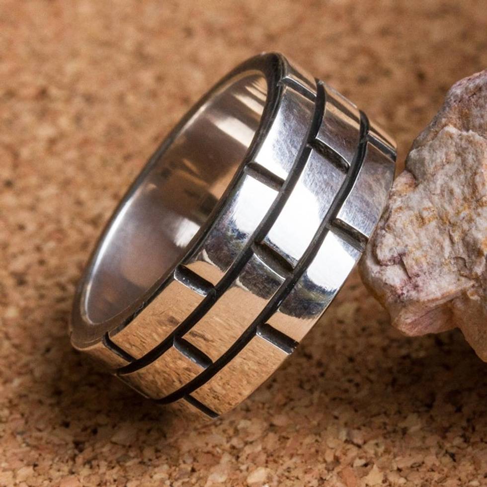 Sterling Silver Band Ring with Rectangle Motifs Mexico 'Fortress Wall' Item ID: 2669926859