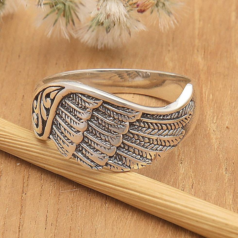 Sterling Silver Band Ring with Wing Motif Openwork Accent 'Mighty Wing' Item ID: 2671764565