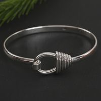 "Designed by Mexican artisan duo Graeme and Philip Watson, this bracelet encircles the wrist with a simple bangle of sterling silver, culminating in a hook clasp that resembles a lasso. This accessory is crafted in the tradition of Taxco silversmithing."