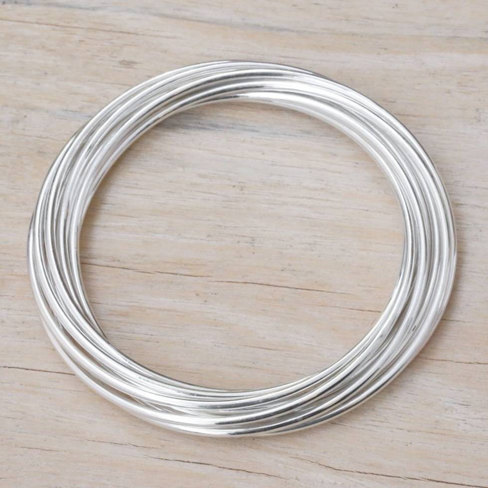 Sterling Silver Bangle Bracelet with 10 Bands from Bali 'Fortified Union' Item ID: 2669922034