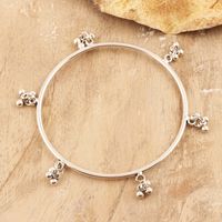 Sterling Silver Bangle Bracelet with Tiny Bells 'Ghungru Bliss' Item ID: 2669943744