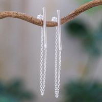 Sterling Silver Bar and Chain Hoop Earrings 'Juxtapose' Item ID: 2669925899