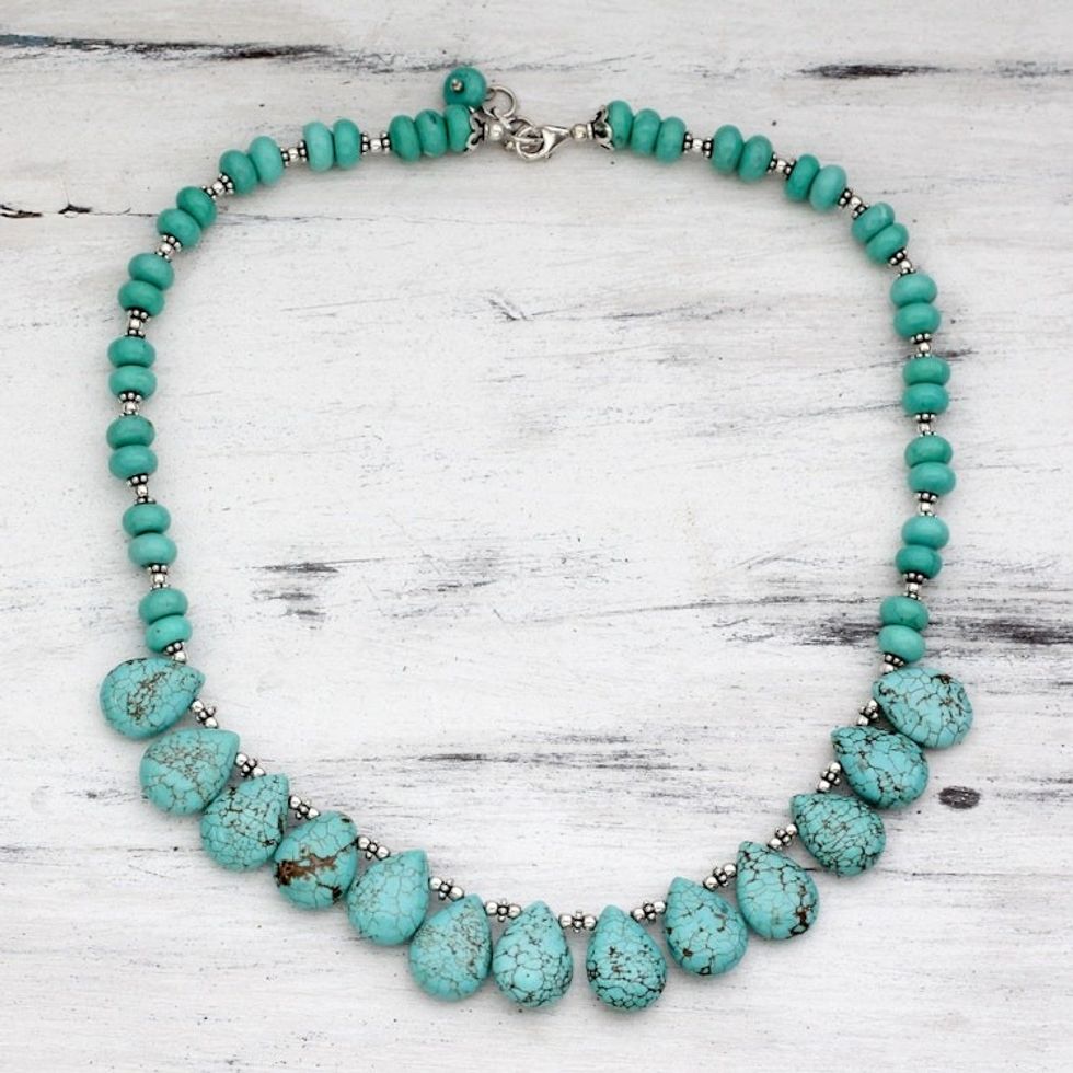 Of all my order of four items, this anklet was the first I put on and I have kept on for weeks now! The style is so pretty, I love mixing these dyed calcite with pearls. So beautiful and feminine. The silver is nice and shiny, and it keeps its shine. I highly recommend for an ultra feminine touch.