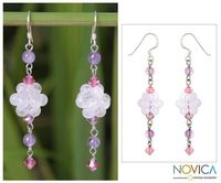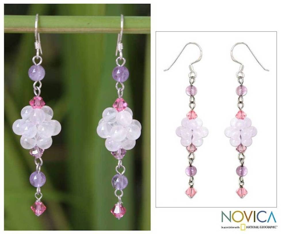 Sterling Silver Beaded Rose Quartz Earrings 'Enchanted Bloom' Item ID: 2669930929
