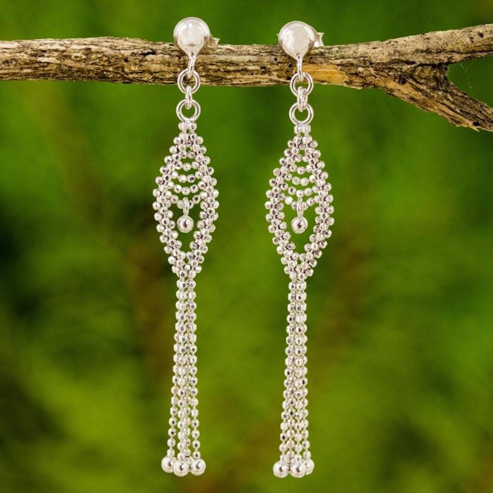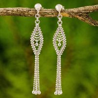 Sterling Silver Beaded Waterfall Earrings from Thailand 'Falling Star' Item ID: 2671801882