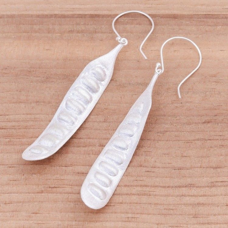 Sterling Silver Bean Dangle Earrings from Thailand 'Bitter Beans' Item ID: 2671798485