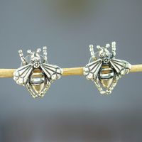 Sterling Silver Bee Button Earrings Crafted in Mexico 'Openwork Bee' Item ID: 2671807736
