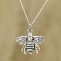 Sterling Silver Bee Pendant Necklace from India 'Humming Bee' Item ID: 2669923973