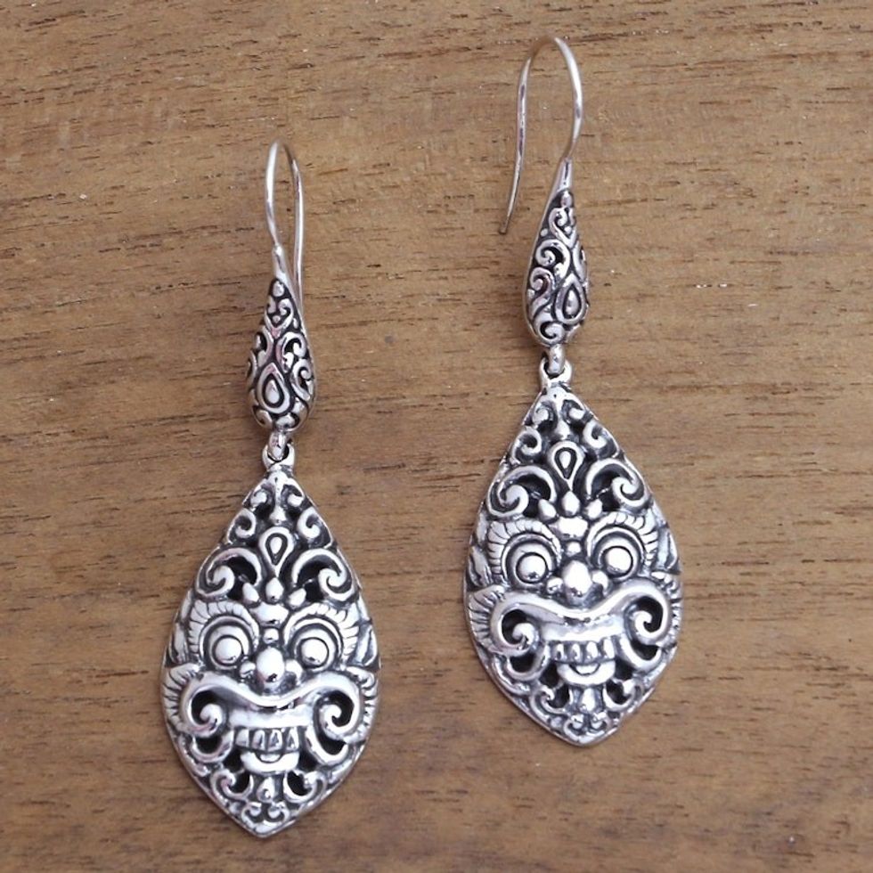 Sterling Silver Bhoma Dangle Earrings from Bali 'Great Bhoma' Item ID: 2671736714