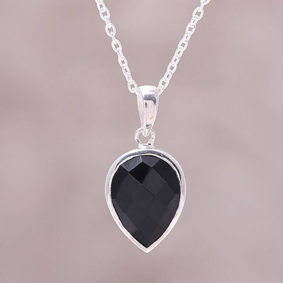 Sterling Silver Black Onyx Midnight Drop Pendant Necklace 'Midnight Drop' Item ID: 2671652071