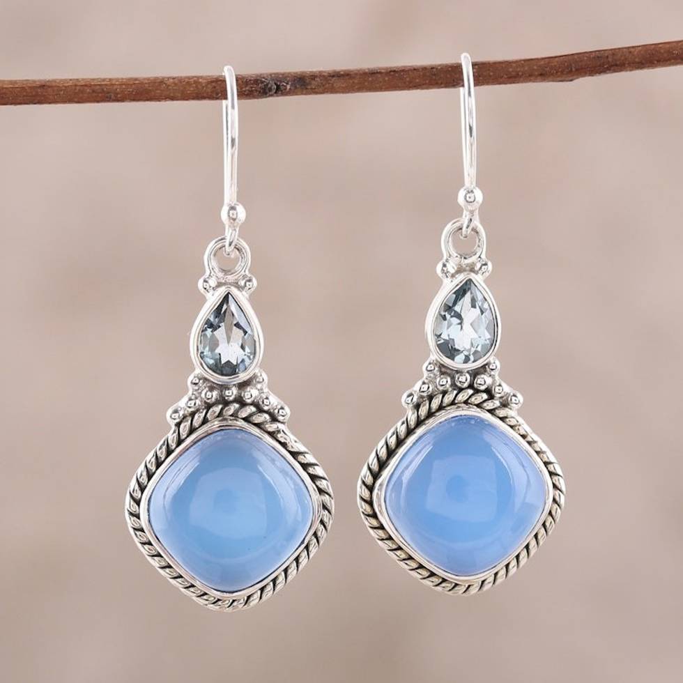 Sterling Silver Blue Topaz and Chalcedony Dangle Earrings 'Blissful Blue' Item ID: 2671792619