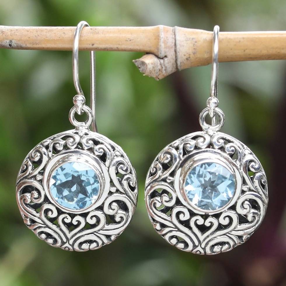 Sterling Silver Blue Topaz Dangle Earrings with Vine Motifs 'Shimmering Blooms' Item ID: 2671765435