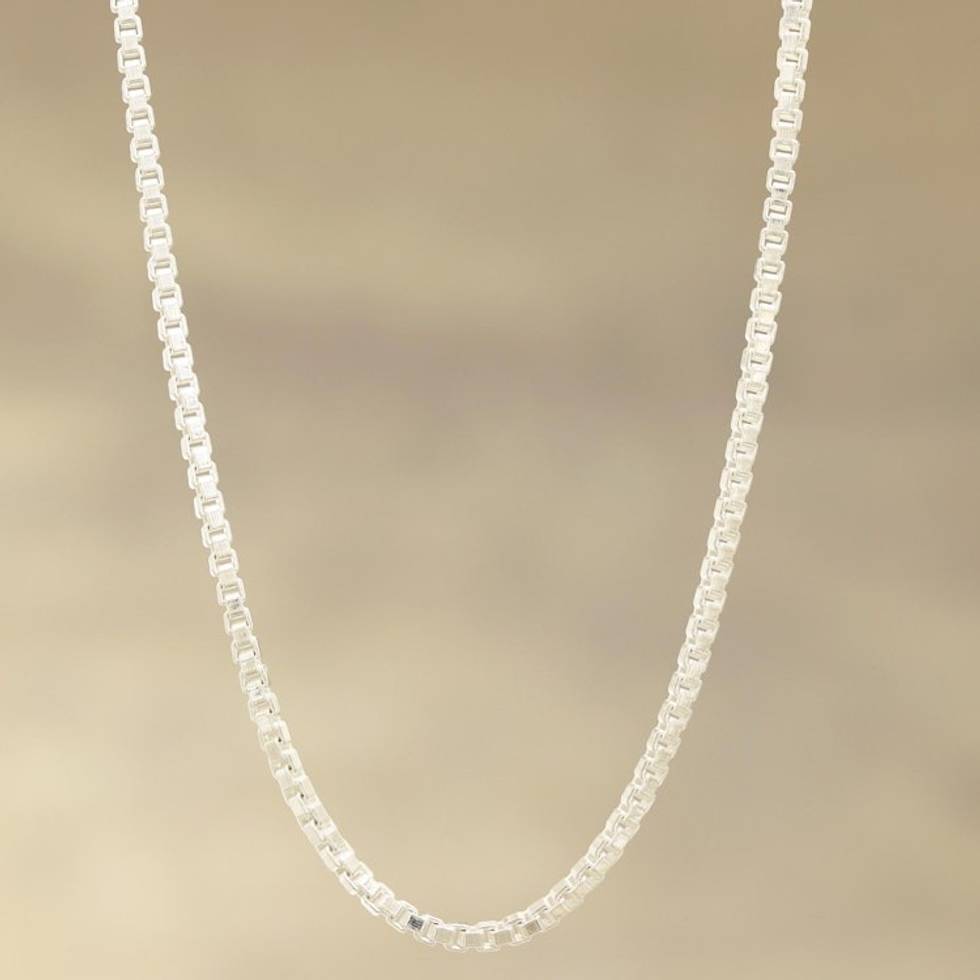 Sterling Silver Box Chain Necklace from India 'Charming Classic' Item ID: 2669943516