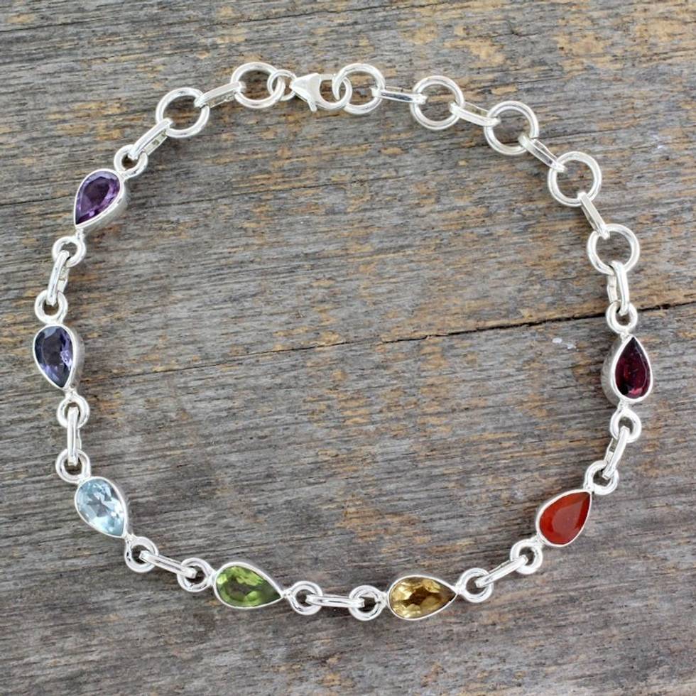 Sterling Silver Bracelet Multi Gemstone Chakra Jewelry 'Inner Glow' Item ID: 2671793462