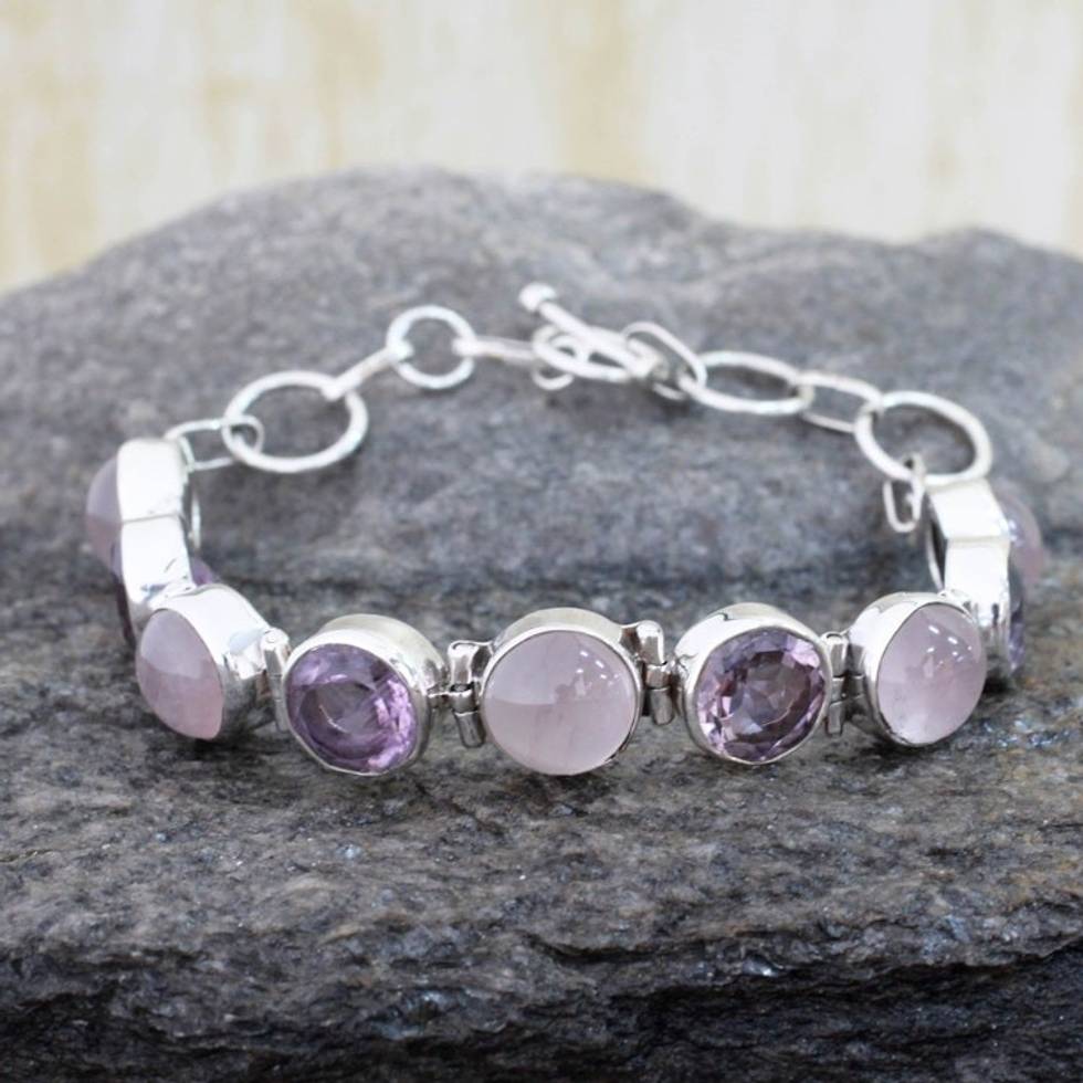 Sterling Silver Bracelet with Rose Quartz and Amethyst 'Spiritual Romance' Item ID: 2669925616