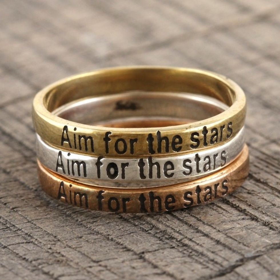Sterling Silver Brass and Copper Band Rings Set of 3 'Triple Wish' Item ID: 2671789299