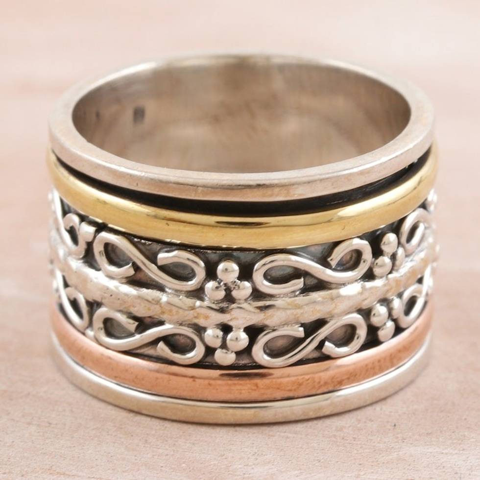 Sterling Silver Brass and Copper Meditation Spinner Ring 'Total Serenity' Item ID: 2671667338