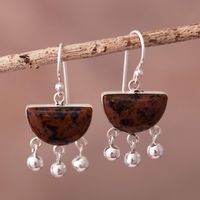 Sterling Silver Brown Obsidian Chandelier Earrings from Peru 'Universe in Brown' Item ID: 2671691469