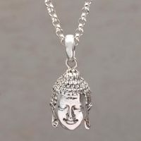 Sterling Silver Buddha Pendant Necklace from Bali 'Buddha Shine' Item ID: 2671734221