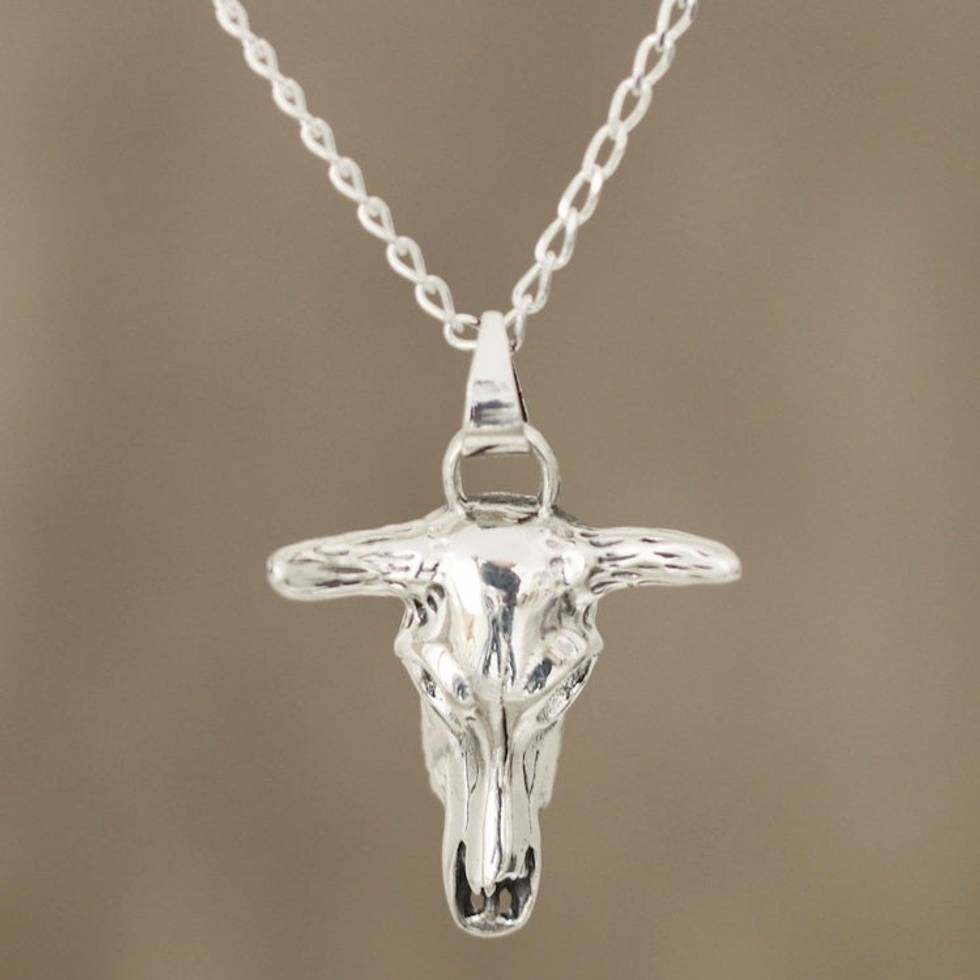 Sterling Silver Bull Skull Pendant Necklace from India 'Daring Bull' Item ID: 2671789504