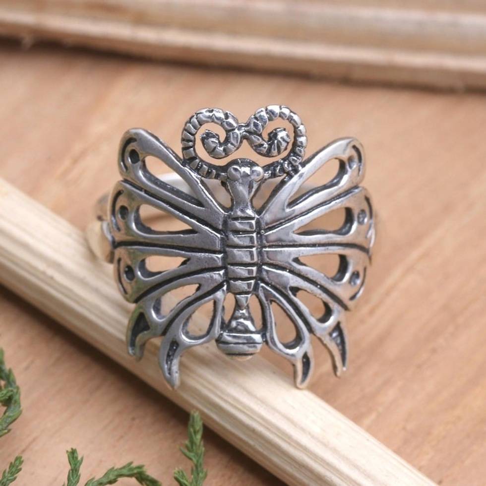Sterling Silver Butterfly Cocktail Ring 'Butterfly in the Sky' Item ID: 2671747305