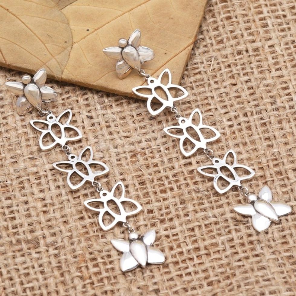Sterling Silver Butterfly Dangle Earrings 'On Butterfly Wings' Item ID: 2671747103