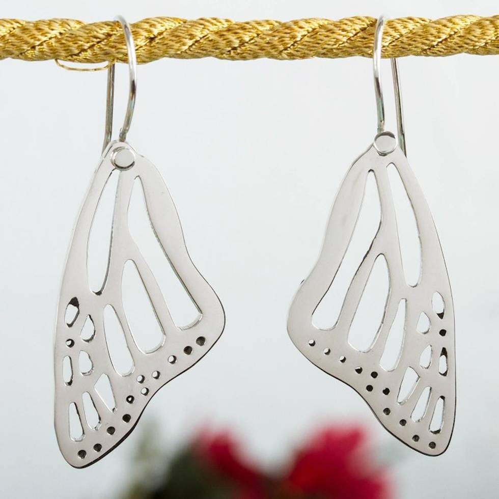 Sterling Silver Butterfly Wing Dangle Earrings from Mexico 'Lovely Wings' Item ID: 2669931896