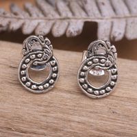 Sterling Silver Button Earrings with Balinese Motifs 'Joined Rings' Item ID: 2669923200