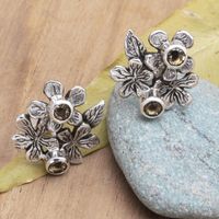 Sterling Silver Button Earrings with Citrine Stones 'Blooms in Winter' Item ID: 2671748567