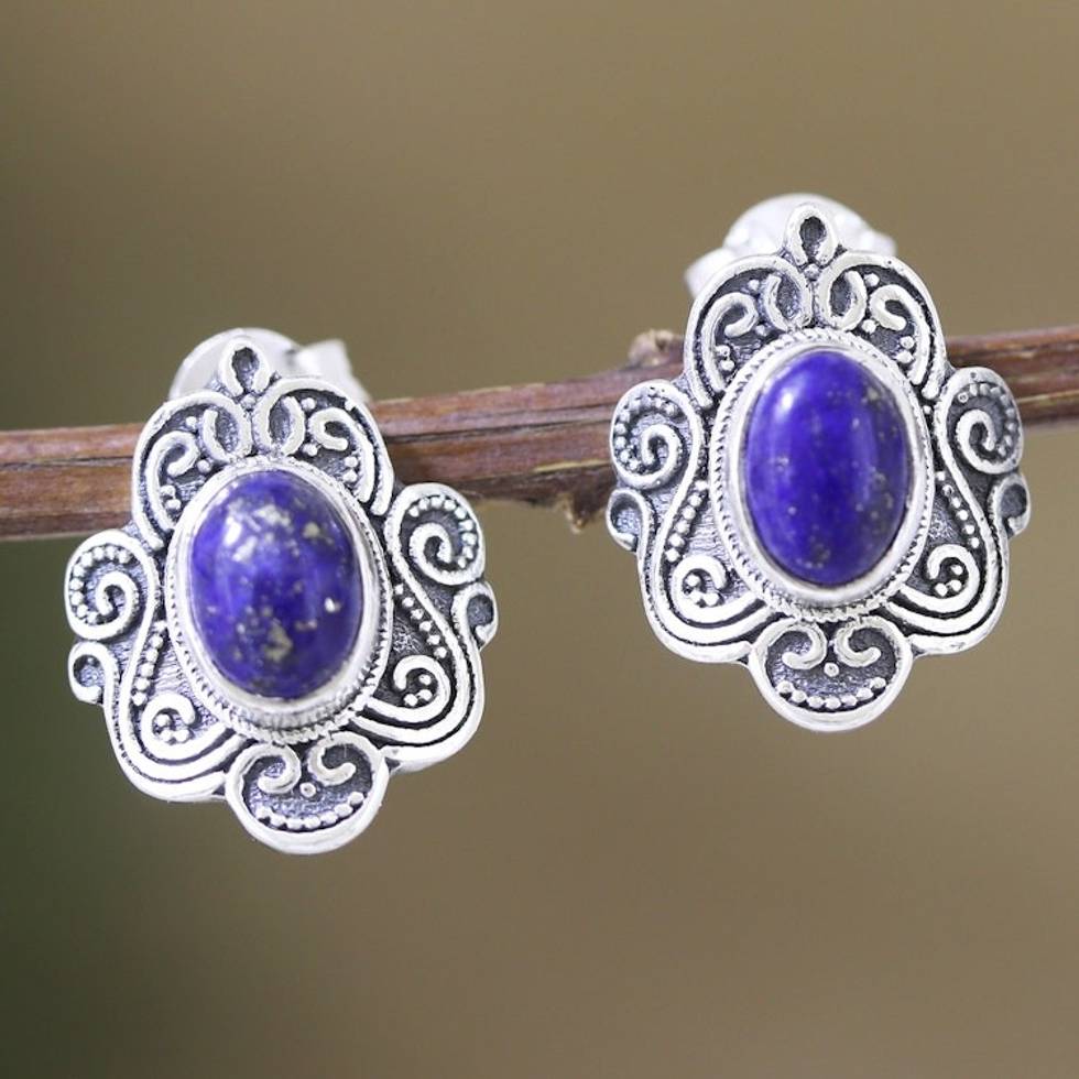 Sterling Silver Button Earrings with Lapis Lazuli Jewels 'India's Royalty' Item ID: 2671786868