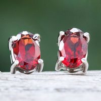 Sterling Silver Button Earrings with Natural Garnet Gems 'Perseverance Maiden' Item ID: 2671797881