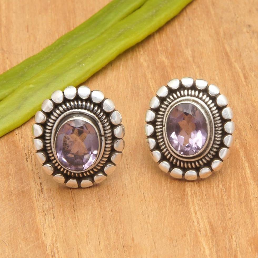Sterling Silver Button Earrings with Oval Amethyst Stone 'Dreamy Purple' Item ID: 2671764928