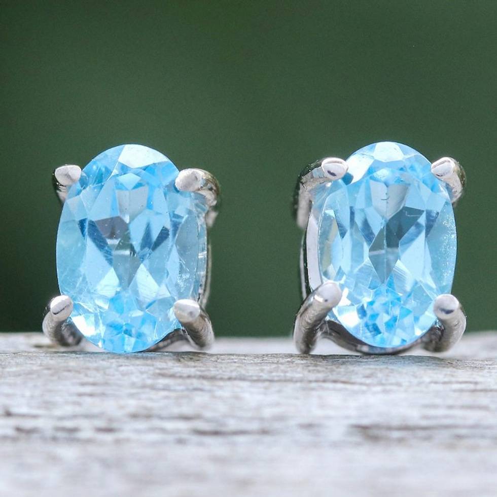 Sterling Silver Button Earrings with Oval Blue Topaz Gems 'Loyalty Maiden' Item ID: 2671798208