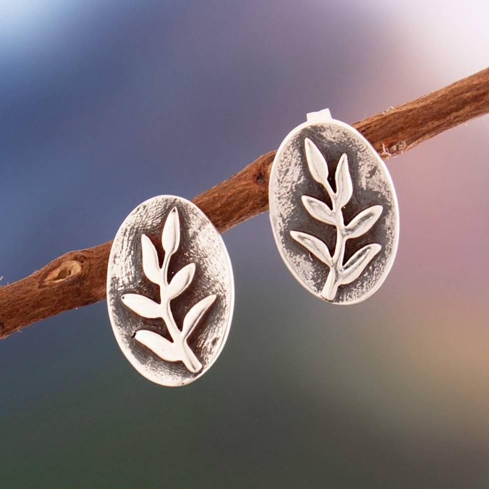 Sterling Silver Button Earrings with Relief Leaf Motif 'Subtle Relief' Item ID: 2671697771