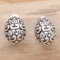 Sterling Silver Button Earrings with Traditional Patterns 'Bali Protection' Item ID: 2671763064