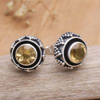 Sterling Silver Button Earrings with Two-Carat Citrine Gems 'Echoes of Success' Item ID: 2676660763