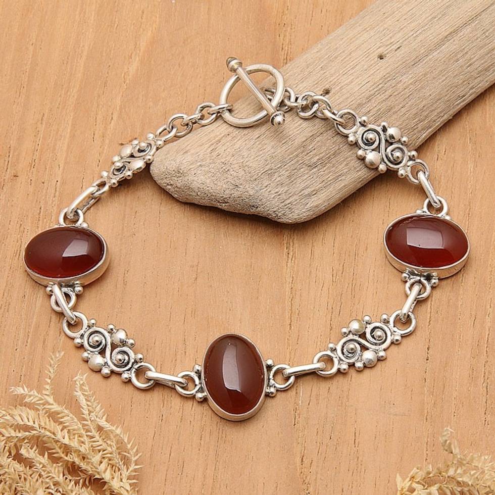 Sterling Silver Carnelian Link Bracelet 'Sunset in Bali' Item ID: 2671698222