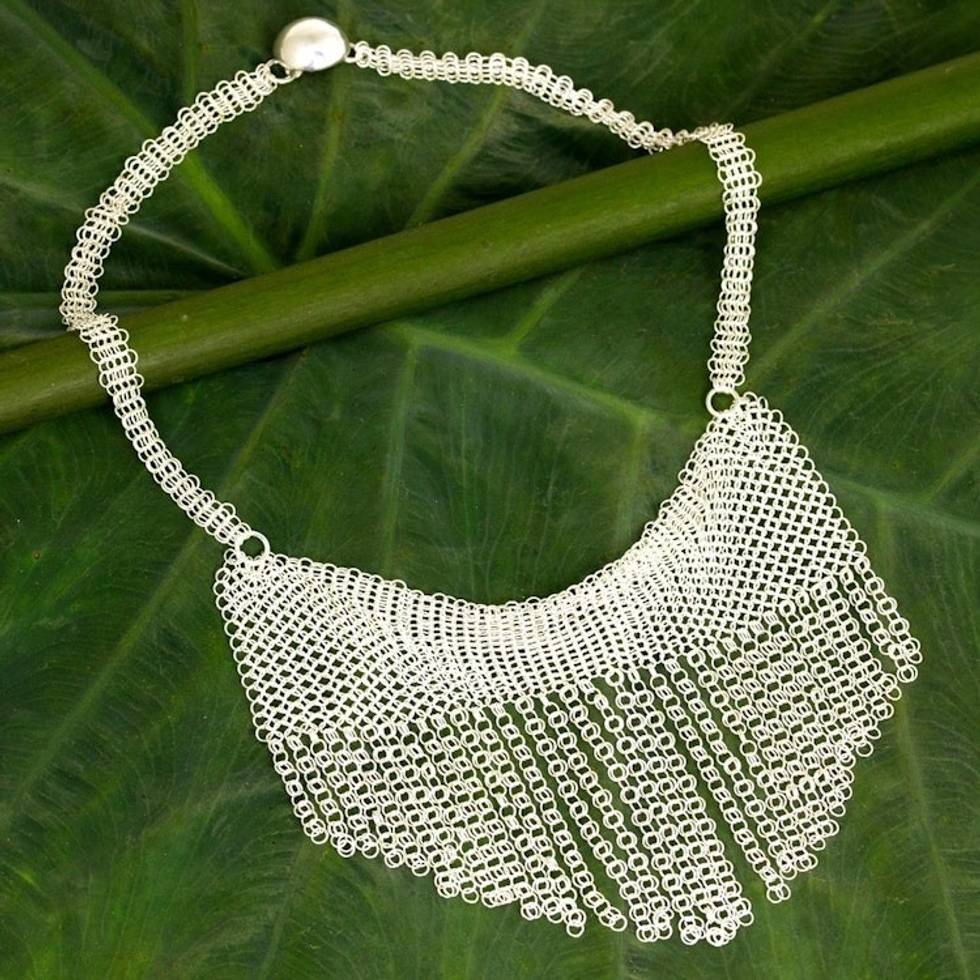 Sterling Silver Cascade Statement Necklace from Thailand 'Moonlight Waterfall' Item ID: 2671802446