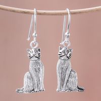 Sterling Silver Cat Dangle Earrings from Thailand 'Mister Cat' Item ID: 2669926132