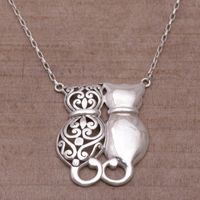Sterling Silver Cat Pendant Necklace from Bali 'Romantic Kittens' Item ID: 2671608337